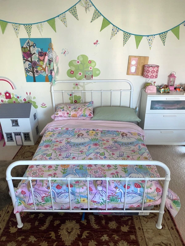 Made from rubber plantation wood for amart the headboard stands 920mm tall. White metal ikea tromso loft double bed and mattress.